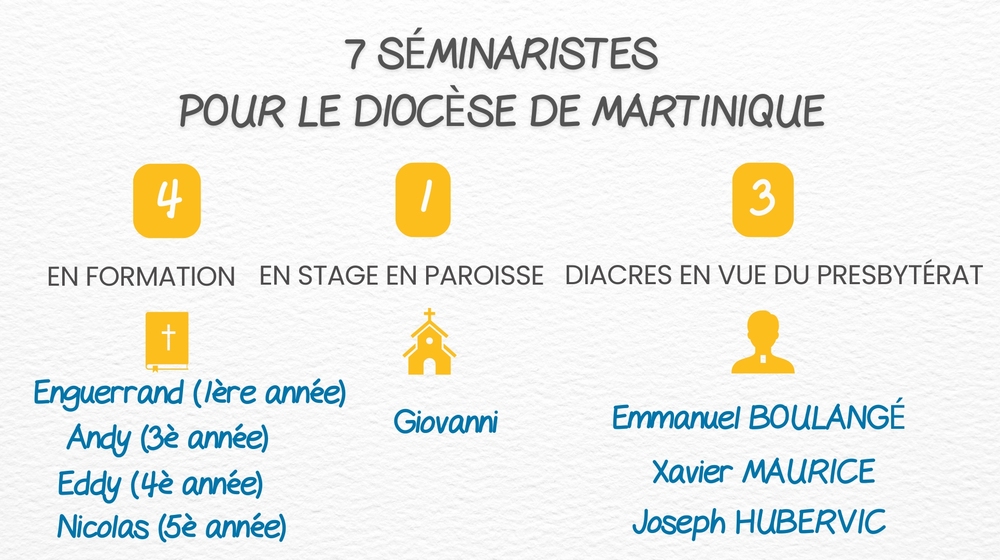 En règle général, nos séminaristes commencent leur 1er cycle en Martinique et font leur 2nd en métropole puis reviennent pour leur stage en paroisse.