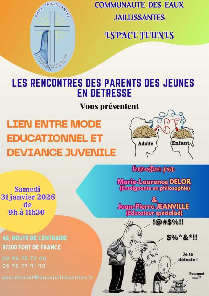 Samedi31/0109h00Rencontre des parents des jeunes en détresse