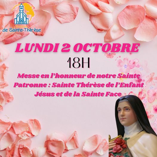 Lundi02/10Messe en l’honneur de notre Sainte Patronne : Sainte Thérèse de l’Enfant Jésus