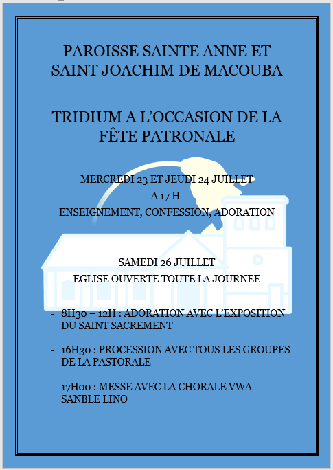 A l'occasion de la fête patronale du Macouba, venez vivre des temps forts ( enseignement, confession, adoration, messe etc.) dans votre paroisse [...]