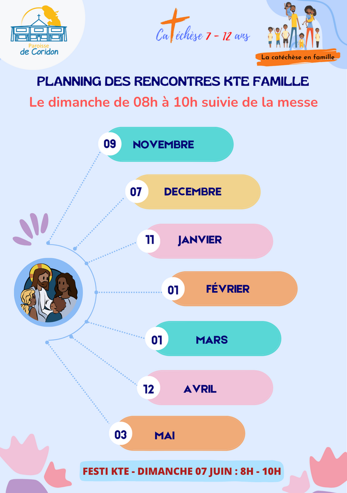 Samedi18/1008h00>Dimanche07/0612h00RENCONTRES CATECHESE 7-12 ANS ~ ANNEE 2025-2026