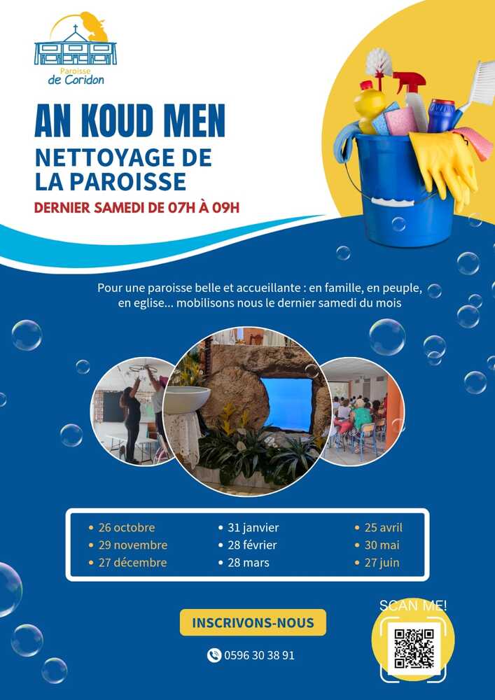 Dimanche26/1007h00>Samedi27/0609h00AN KOUD MEN - Tous ensemble, nettoyons notre paroisse