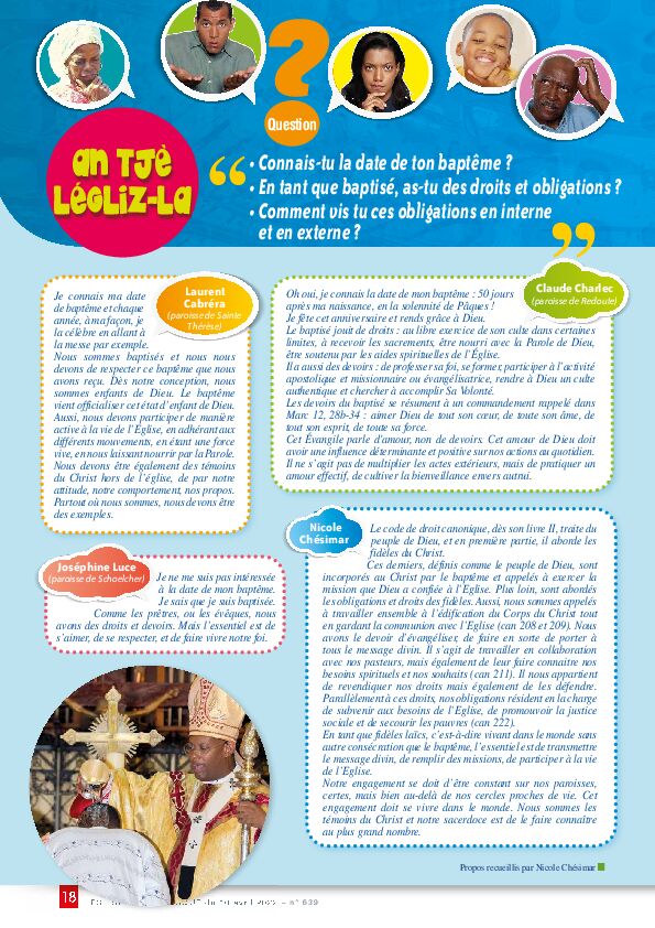 - ANTJÈ LÉGLIZ-LA - "Connais-tu la date de ton baptême ? "