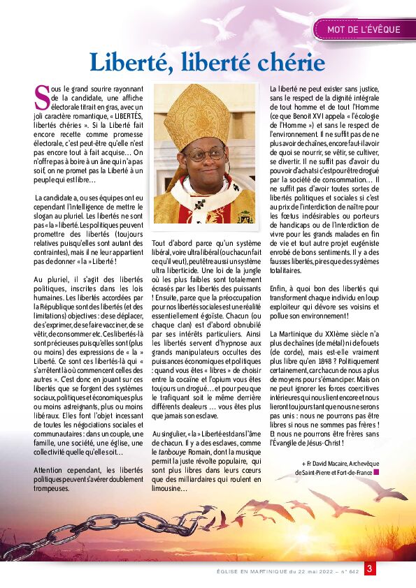 - MOT DE L'ÉVÊQUE - "Liberté, liberté chérie"