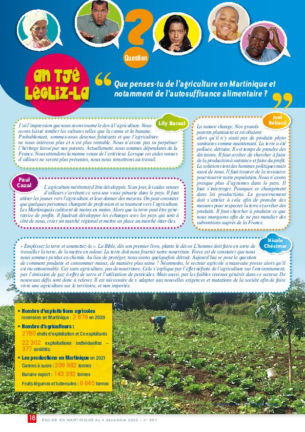- ANTJÈ LÉGLIZ-LA - "Que penses-tu de l’agriculture en Martinique et notamment de l’autosuffi sance alimentaire ? "