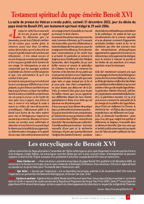 ÉGLISE EN MARTINIQUE du 15 janvier 2023 – n° 654 19