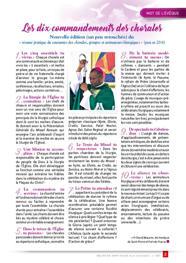 - MOT DE L'ÉVÊQUE - "Les dix commandements des chorales"