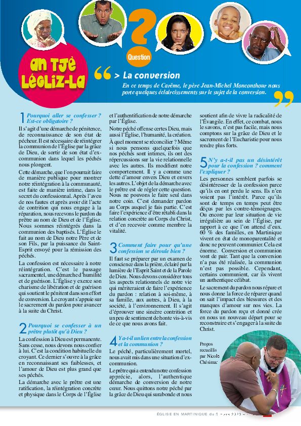 Le thème de la conversion est traité dans la rubrique « An tjè\