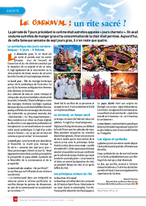- SOCIÉTÉ Le carnaval : un rite sacré ?