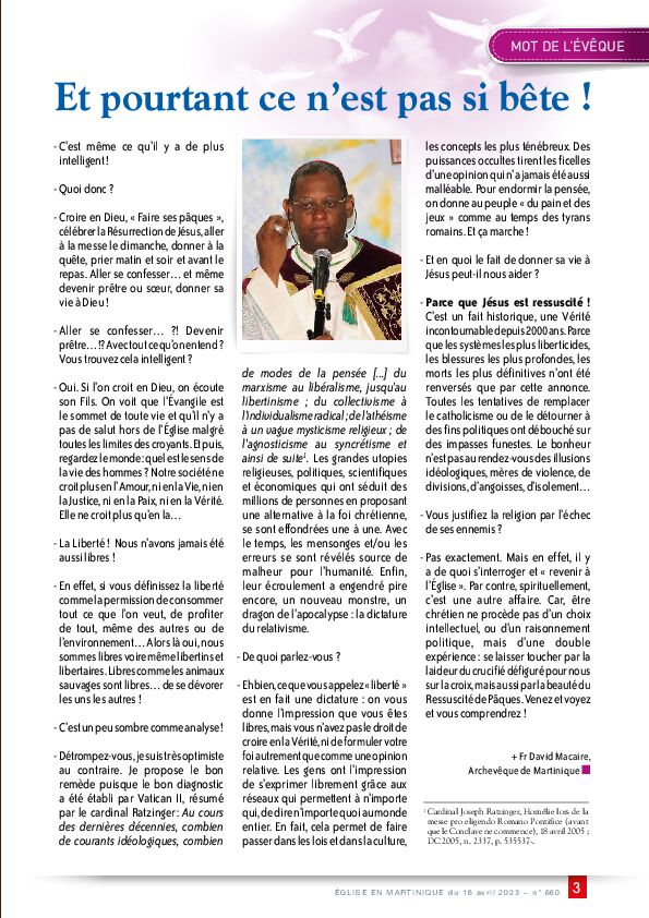 - MOT DE L'ÉVÊQUE - "Et pourtant ce n’est pas si bête !"
