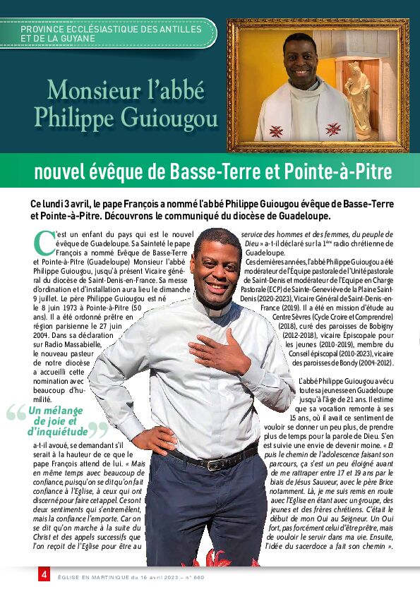 - PROVINCE ECCLÉSIASTIQUE DES ANTILLES ET DE LA GUYANE - Monsieur l’abbé Philippe Guiougou nouvel évêque de Basse-Terre et Pointe-à-Pitre »