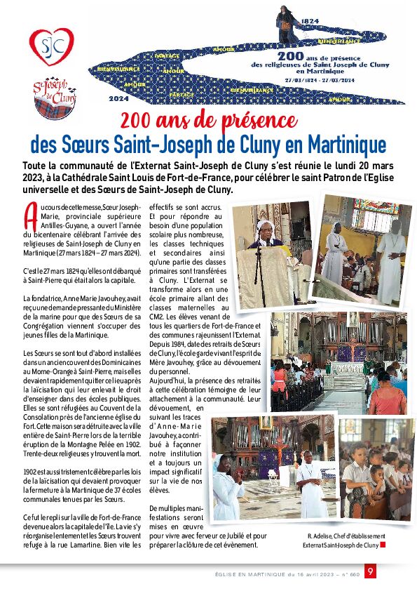 - 200 ans de présence des Soeurs Saint-Joseph de Cluny en Martinique