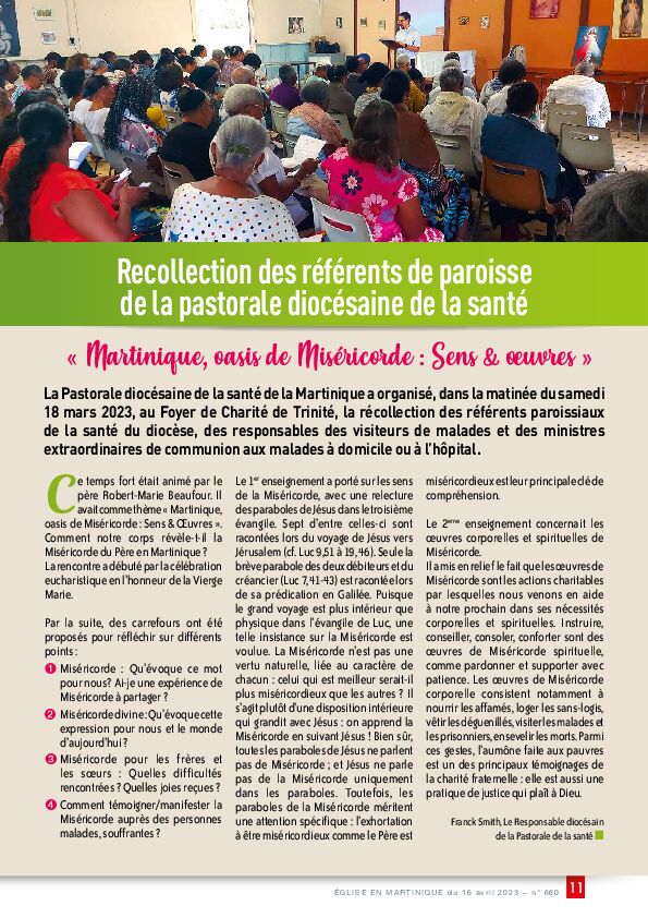 - Recollection des référents de paroisse de la pastorale diocésaine de la santé « Martinique, oasis de Miséricorde : Sens & oeuvres »