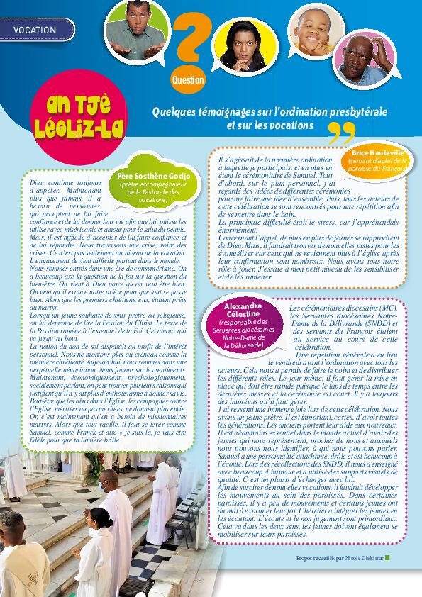 - ANTJÈ LÉGLIZ-LA - Quelques témoignages sur l'ordination presbytérale et sur les vocations