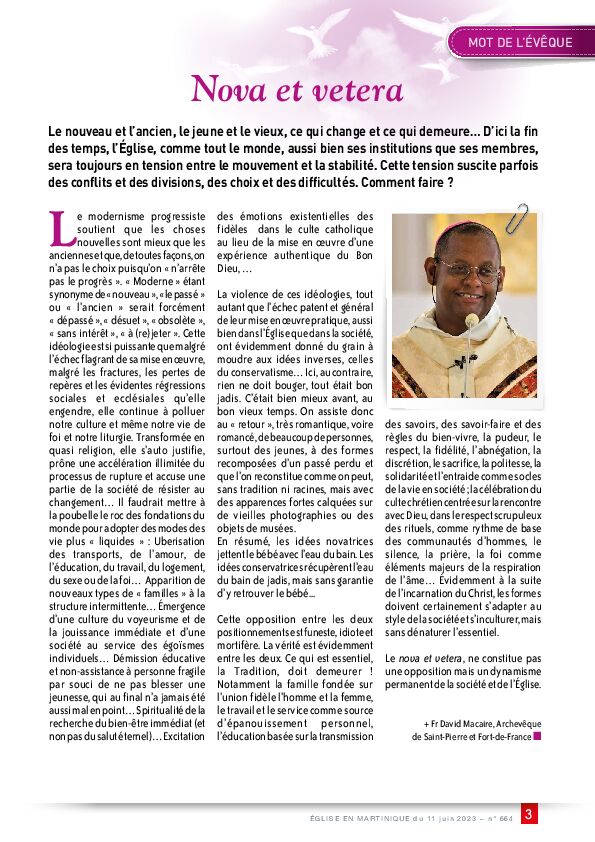 - MOT DE L'ÉVÊQUE - "Nova et vetera"