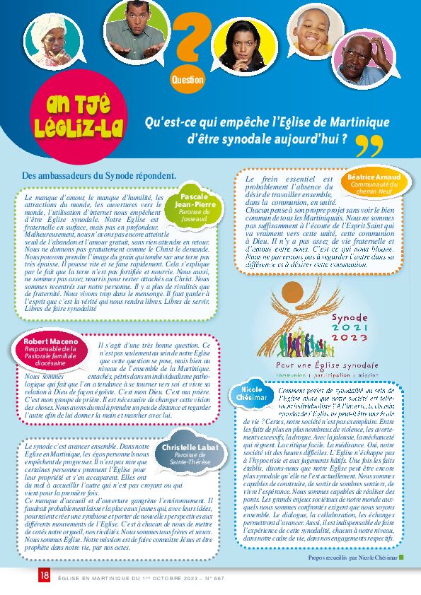 l’Eglise de Martinique d’être synodale aujourd’hui ? », vient