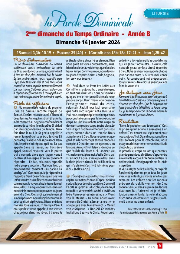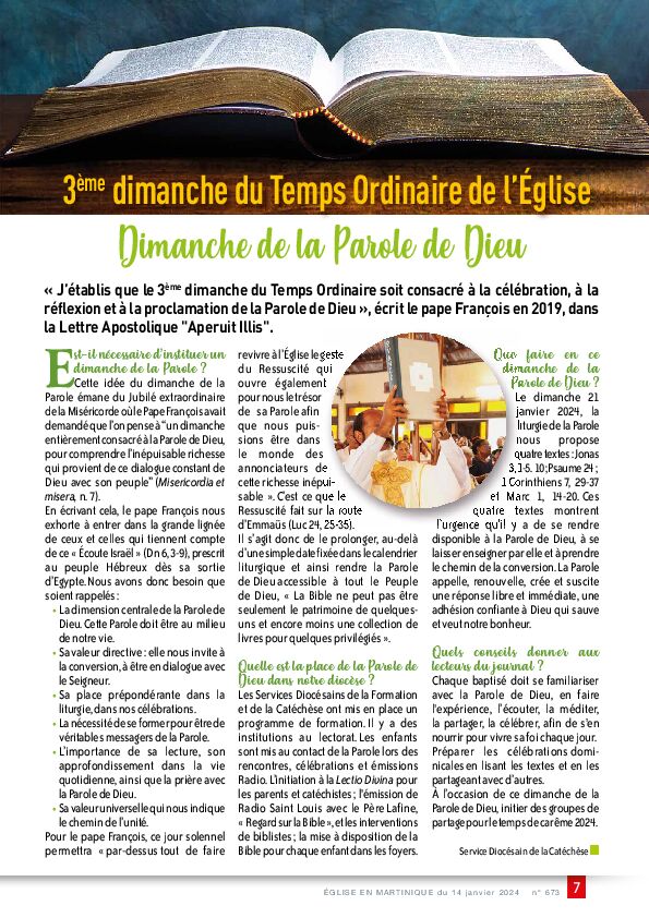 de la Parole de Dieu. » De ce fait, le dimanche 21 janvier 2024, nous