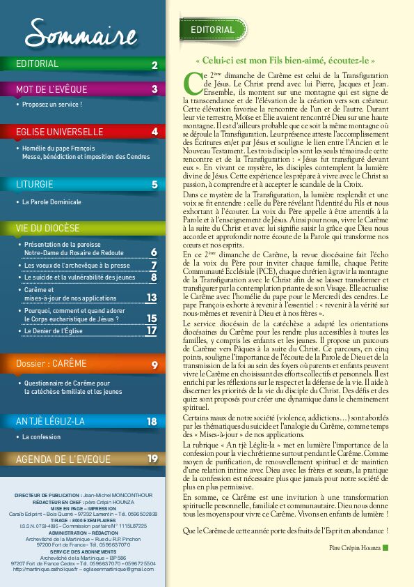 dimanche de Carême, la revue diocésaine fait l’écho