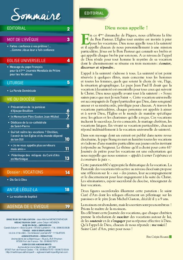 Pour vous abonner à la revue diocésaine "Eglise en Martinique" et le recevoir directement chez vous en avant-première :
