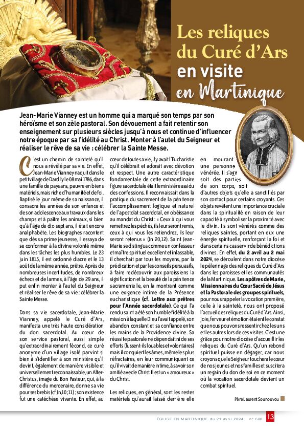 - Pèlerinage des reliques du Curé d’Ars en MartiniqueVIE DU DIOCÈSE