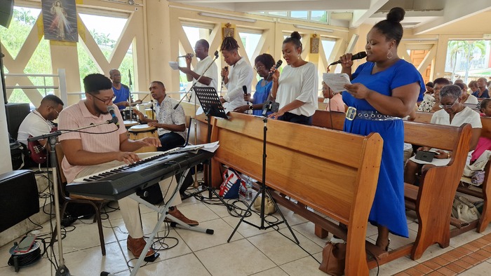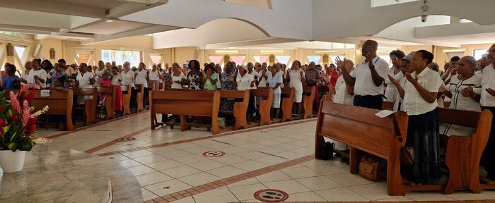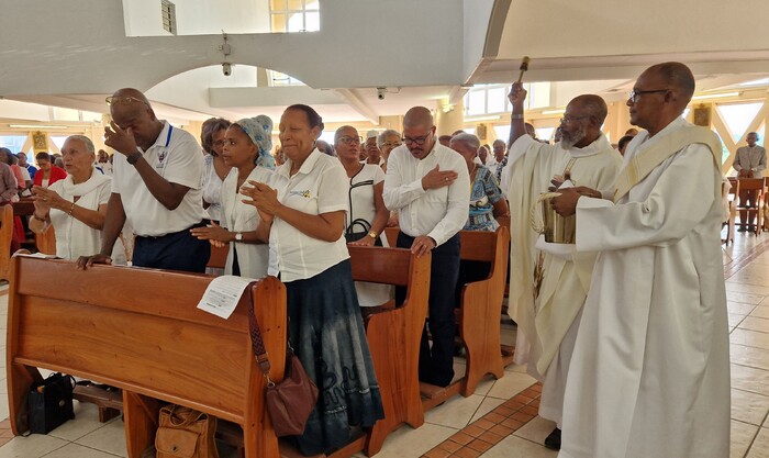 Cependant, pour montrer Jésus, il faut être un corps uni dans sa diversité de charismes et de noms. Non pas des pastorales chacune de son côté avec ses propres temps forts (mwen ka fè zafè mwen). Nous ne sommes pas ici pour faire « nos affaires », nos petits plans, nous sommes là pour faire les affaires du Bon Dieu. Œuvre humano-divine ! C’est Dieu qui nous rassemble, qui nous convoque pour vivre cette unité aujourd’hui. Et nous pensons bien sûr à toutes les autres pastorales. C’est ensemble que le Seigneur nous appelle à montrer son Corps qui est vivant. Attention donc, parce que nous avons parfois un comportement paradoxal, un contre Évangile, contre témoignage, quand nous parlons de l’Église comme si elle était extérieure à nous (l’Église est ceci, le pape est cela, l’évêque est ceci, les prêtres sont cela). Comme s’il y a un moment de sa vie où l’on peut déposer son baptême, où l’on peut ne pas être dans l’Église, où l’on peut ne pas porter sa croix ! Ou on est avec Jésus, ou on ne l’est pas. Ou on est baptisé ou on ne l’est pas. Qui suis-je aujourd’hui ? Le Seigneur nous interpelle sur cela aussi, parce que nous avons à être en communion les uns avec les autres, à être fiers de qui nous sommes.