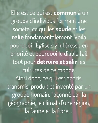 Non ! Car, au-delà des objets « culturels », la culture est la participation et la réponse de la créature humaine à l’oeuvre de son Créateur et Père. Elle est ce qui est commun à un groupe d'individus formant une société, ce qui les soude et les relie fondamentalement. Voilà pourquoi l’Église s’y intéresse en priorité et pourquoi le diable fait tout pour détruire et salir les cultures de ce monde.