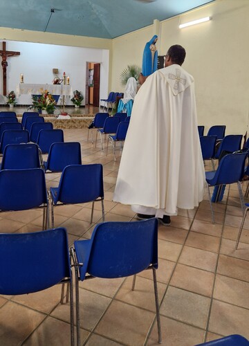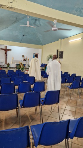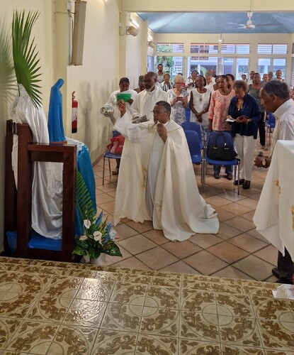 Le mercredi 12 novembre 2025, juste avant la messe de 6h30, le père Benjamin François-Haugrin, assisté du père Fortuné Gibon, a procédé à l'intronisation de Notre-Dame de la Trinité à la chapelle de Fond Lahaye.