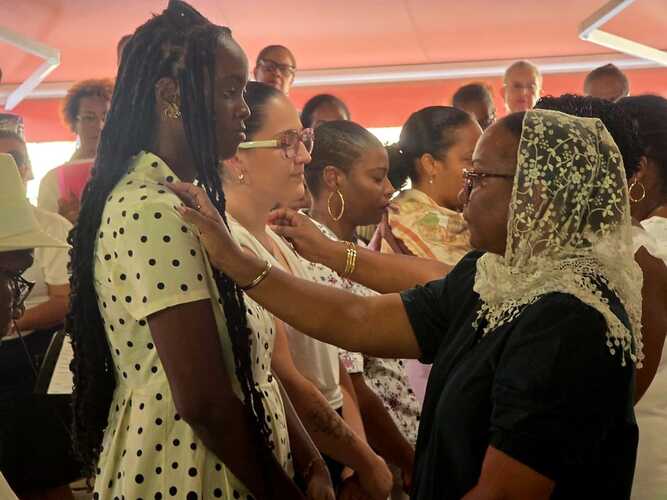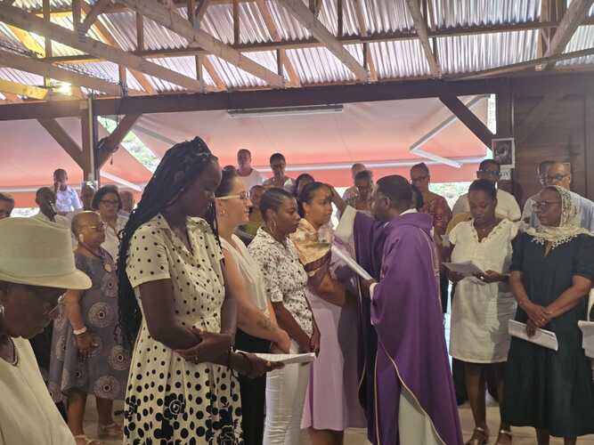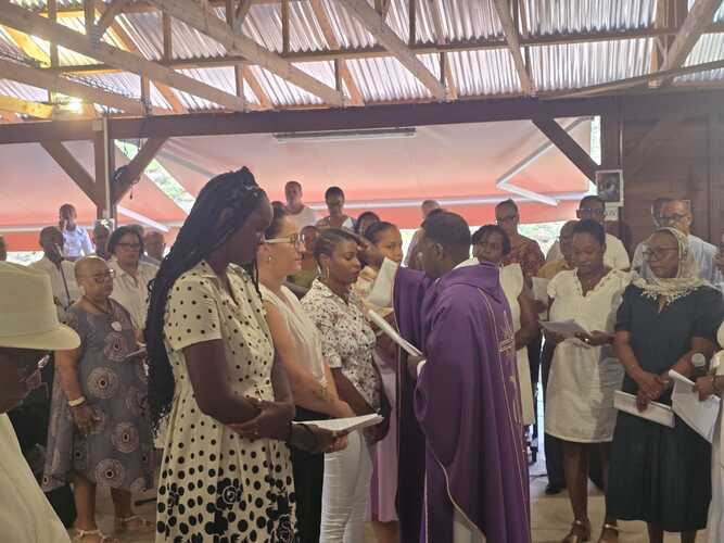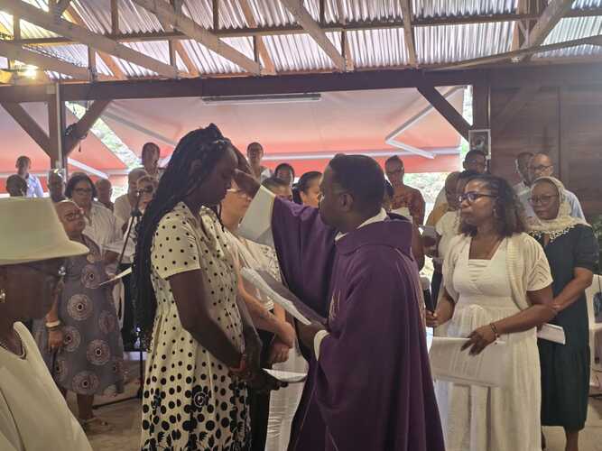 nous avons pu, en ce 2ème dimanche de l'avent, célébrer avec Rébecca, Stéphanie, Chloé, Claudia, leur famille et les membres du SDK, leur entrée en catéchuménat sur notre paroisse. Moment de joie et de partage. A cette occasion elles ont reçu la croix de Jésus Christ, le Fils de Dieu, symbole de la Rédemption et la bible symbole de leur soif de se nourrir de la parole de Dieu.