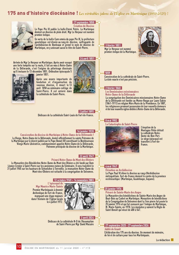 Cette année jubilaire n’est pas un simple regard vers le passé. Un jubilé, c’est une année de grâce, un temps pour remettre les compteurs à zéro avec Dieu et repartir avec un élan nouveau. C’est l’occasion pour nous d’honorer l’héritage des anciens tout en répondant aux défis de la Martinique d’aujourd’hui ; et une chance unique de dire : « Merci pour le passé, OUI pour l’avenir ! »