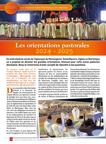 Dans une petite vidéo d’invitation réalisée à la demande de l’équipe de communication du Congrès Mission, j’ai exprimé le souhait de partager avec vous tous, ma « vue » du diocèse. Je voulais que les différents acteurs diocésains puissent voir de leurs yeux et expérimenter le dynamisme et la vérité des dons de l’Esprit dans notre Église en Martinique ! Mon rêve, de voir venir des délégations de toutes les paroisses, s’est réalisé (bravo aux curés et aux ambassadeurs du Synode !). Et beaucoup de frères et de soeurs que je retrouve année après année au service de l’Église dans leur paroisse ou au niveau diocésain ont été touchés par le nombre et la diversité des personnes et des groupes. On voit l’évêque un peu partout. On savait l’engagement de nos 60 prêtres, autochtones et missionnaires. On apercevait parfois les diacres et les dizaines de laïcs en responsabilités diocésaines ou les ambassadeurs du synode. On n’imagine pas les centaines de bénévoles engagés dans des mouvements et des apostolats. Mais les milliers de congressistes ont été une grâce, un cadeau de Dieu. Et que dira-t-on des 20 000 candidats à la mission que nous avons l’ambition de réunir à la Pentecôte ? Le Congrès avait pour but de susciter ou de raviver la flamme missionnaire de chacun des participants. Ce n’était pas une manifestation religieuse de plus composée de belles exhortations spirituelles suivies de temps de « ministère charismatique ». C’était un temps de partage d’expérience et de témoignage mutuel. Non pas un événement comme les autres, mais un rassemblement interne, un cénacle géant entre nous, pour laisser l’Esprit-Saint nous guider. Il n’y avait là que des fidèles déjà convaincus prêts à se laisser transformer en missionnaires à l’appel de l’Église, c’està- dire des uns des autres.