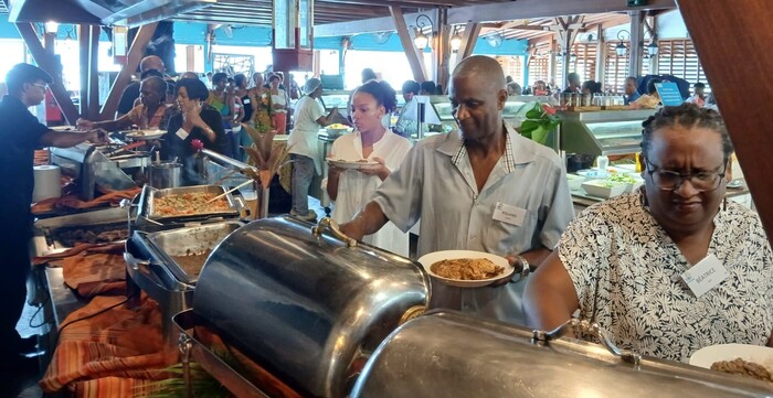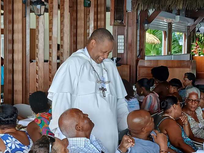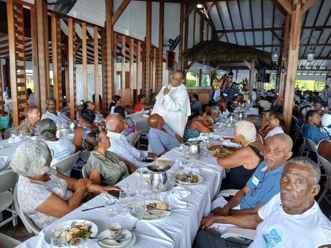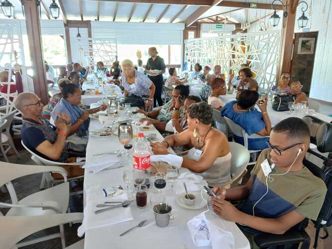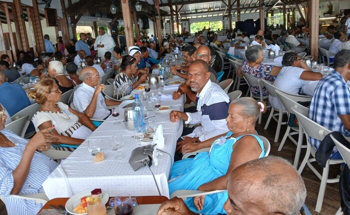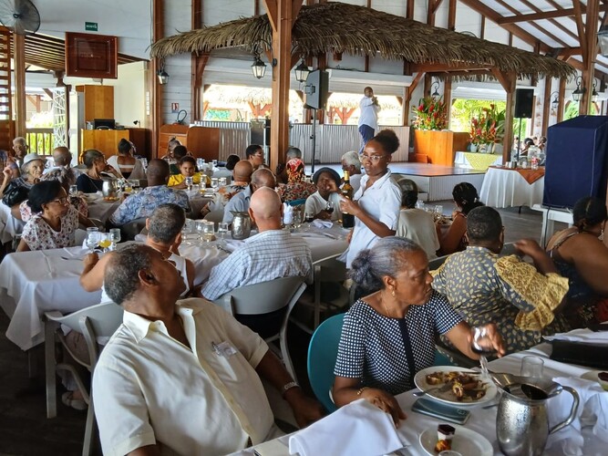 Après la messe solennelle, célébrée à 7h30 à l'église du bourg, les festivités se sont poursuivies au cours du déjeuner paroissial qui a rassemblé plus de 300 convives au restaurant Le Bambou situé à l'Anse Mitan, aux Trois-Ilets. Notre archevêque nous a fait l'agréable surprise de nous y rejoindre, après avoir célébré l'eucharistie à la paroisse de Ducos qui partage avec nous le saint Patronage de Notre-Dame de la Nativité.
