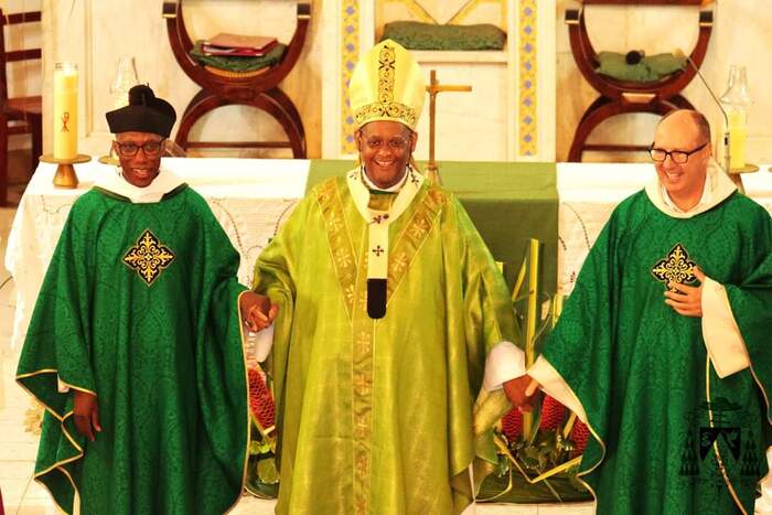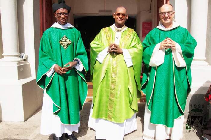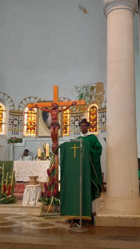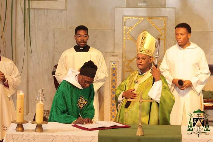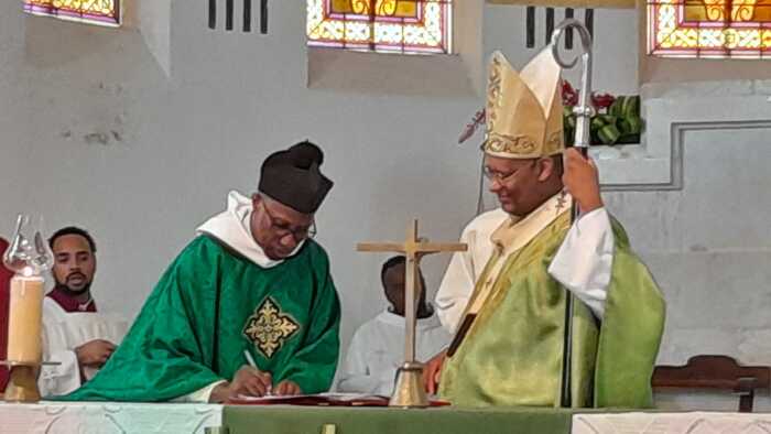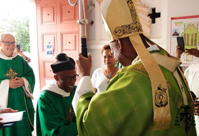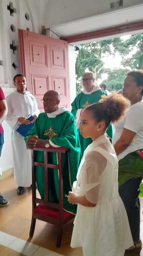 Ce dimanche 13 octobre, le nouveau curé-recteur P. Frédéric-Marc BALDÉ a été installé par notre évêque Mgr David Macaire, à la messe de 7h. Messe unique du jour qui a rassemblé tous les paroissiens heureux de l'accueillir.