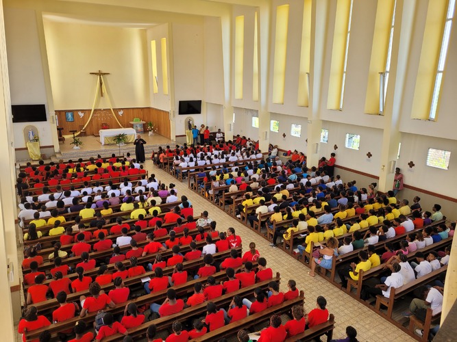 Les jeunes de 14-18 ans de la Martinique se sont rassemblés durant cette journée pour partager un moment conviviale à travers des ateliers (évangélisation dans les rues, basket, self défense, enfant de chœur, art thérapie, jeux de société, créole et culture, danse traditionnelle, chant chorale). La journée s'est clôturée par la messe.