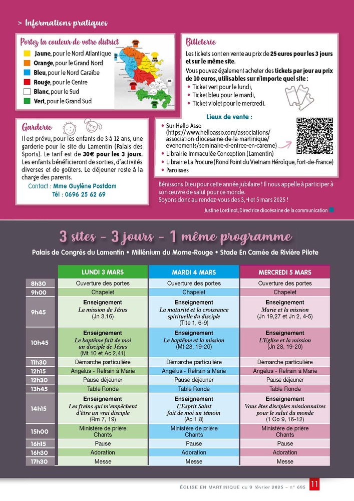 En cette année jubilaire, nous avons un rendez-vous important, du 3 au 5 mars, que nous ne devons pas rater. Nous ne porterons du fruit que si nous sommes ancrés dans l’amour de Dieu et de nos prochains. Il nous faut croire, vivre et annoncer la Bonne Nouvelle. Il ne peut avoir de synodalité féconde sans la formation des baptisés. Ne nous contentons pas de ce que nous avons appris au catéchisme enfant. Ressourçonsnous ! Formons-nous pour que nous soyons “sel de la terre et lumière du monde” ! Mettons-nous en action pour remplir notre mission !