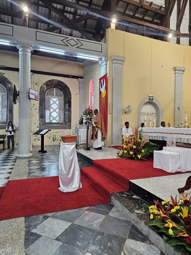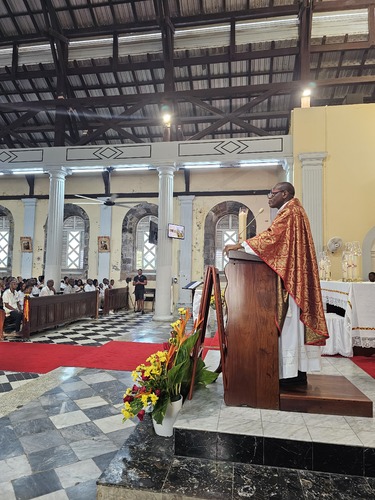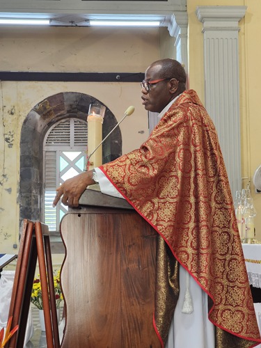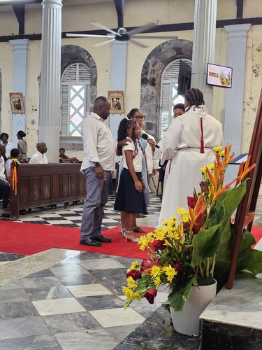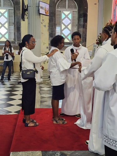 La 2nde partie, comprenant l'imposition des mains et la chrismation, sera réalisée demain au stade de Dillon, avec l'ensemble des confirmands du diocèse.