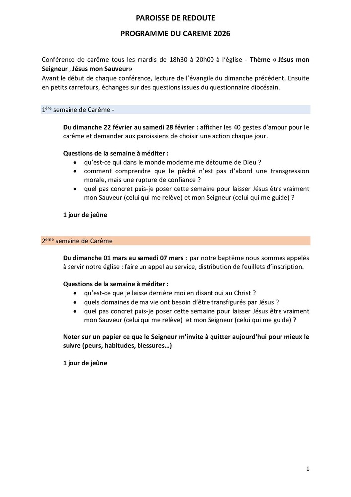 Informations 19/02/2026 - 28/03/2026 Redoute parcours de carême 2026 proposé à tous sur la paroisse de Redoute
