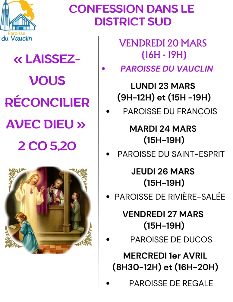 Planning de Confession du District SUD